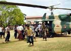Aug 28 (AP) People gather around a military helicopter carrying wounded soldiers to a hospital in Polonnaruwa, Aug. 28. Two soldiers were killed and 12 wounded in a fierce battle with Tamil Tiger rebels in northeast Sri Lanka on Monday, the military said.