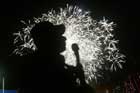 Aug 29 (AP) A Sri Lankan soldier is silhouetted as fireworks are seen in the sky above the Sugathadasa Stadium during the closing ceremony of the South Asian Games in Colombo, Aug. 28,