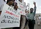 Aug 29 (AP) Sri Lankan journalists shout slogans during a protest over kidnapping of an ethnic Tamil journalist in Colombo, Aug. 29, 2006. Nadaraja Guruparan, an ethnic Tamil journalist who disappeared on his way to work in the Sri Lankan capital Tuesday, was probably abducted, a media rights group said,