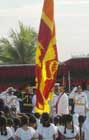 Feb 4 (AFP) President Mahinda Rajapakse (2R) raises the national Lion flag in Colombo 04 February 2006 to mark the island's 58th anniversary of independence from Britain. Rajapakse called for peace and unity in his country torn apart by ethnic violence that has claimed over 60,000 lives since 1972.