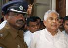 Jan 20 (Reuters) Former Deputy Defence Minister Anuruddha Ratwatte (R) comes out the court with a police escort at the High Court of Colombo January 20 2006. Ratwatte and his two sons were accused of shooting dead 10 youths during a 2001 general election.