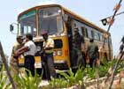 May 16 (Reuters) A Sri Lankan government policeman frisks a civilian bus passenger at a check point in Jaffna, northern Sri Lanka, May 16, 2006. Former Tamil Tigers now part of a breakaway group appear to be carrying out attacks and extortion in Sri Lanka's north