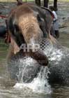 May 18 (AFP) A Sri Lankan mahout washes an elephant at a public park in Colombo, 18 May 2006. Temple elephants sheltering at the park are getting more frequent baths during the day because of unusually hot and humid weather.