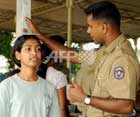 May 4 (AFP) A Sri Lankan police sergeant measures the height of an applicant who came to enlist in the Sri Lankan police force at a police station in Colombo, 03 May 2006.