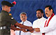 Dec 25 (MoD) Under the seventh phase of the 'Api Wenuwen Api' project for war heroes, 29 houses completed in Kalutara district were given ownership today (24) in the presence of the President Mahinda Rajapaksa. The main event was held at Rajawatta ground in Kalutara district. Beloved wife and the child of the soldier Sandaruwan KGR who sacrified his life in liberating our country from the terrorism lasted for three decades,