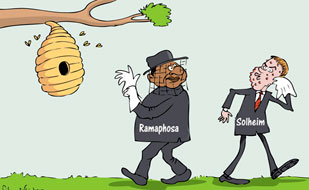 July 5 (CT) Cyril Ramaphosa, the Vice President of South Africa and President Jacob Zuma's special envoy on Sri Lanka will be arriving in Sri Lanka on Monday on an official visit, which the minister Keheliya Rambukwella, has described as having no specific 'agenda.' When Rambukwella made those remarks at the weekly Cabinet news briefing, one cynic, among the scribes gathered there asked, tongue-in-cheek, whether Ramaphosa and his four-member team are coming as tourists.