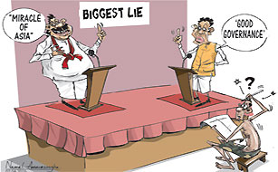 Apr 8 (Island) It may be wrong to argue that our lawmakers do not render any service at all to the country in return for their salaries, perks and privileges. They are more sinned against than sinning. Their biggest service to the nation is helping preserve two traditional art forms, to wit, nadagam (operatic folk drama) and kolam (mask dancing). No, they do not do so by allocating sufficient funds for Department of Cultural Affairs or University of