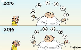 Dec 22 (Island) What most people, crushed under a massive economic burden, wish for is a square meal. But, well-nourished political endomorphs have no such worries. Every day is Christmas for them. For, Santa is apparently resident in Parliament and takes care of all their needs. Now, they get pocket money to the tune of Rs. 100,000 each a month! Power is highly addictive and fuels greed and ambitions. Elvis Presley it was who famously likened ambition to a dream with a V8 engine.