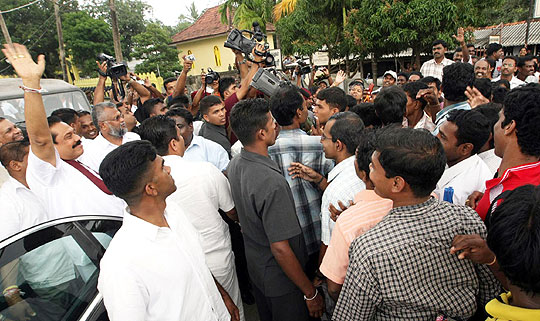 At present Jaffna town is very busy with Presidential election campaigns and a few days earlier the oppositions common candidate General Sarath Fonseka also visited the same Hindu Temple, the ancient Nallur Kovil with supporters for Hindu religious activities during his visit to the area. People of Jaffna warmly welcomed the President and thanked him for bringing the much needed peace in the country. security of the area has been tightened up for the President's visit and large crowds gathered along the roads to have a glimpse of President Rajapaksa. He is scheduled to address a public rally at Alfred Duraiappa Grounds in Jaffna this afternoon. Pix by: Sudath Silva
