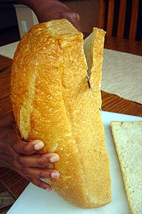Remove the foil and cut the bread just like the way you cut chocolate roll cake.