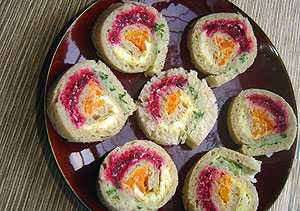 Cut bread into horizontal slices, and trim all the edges of the bread.